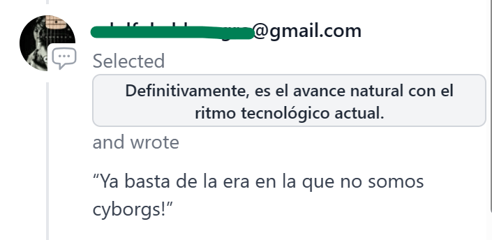 Respuestas del día: Me sorprende que la gran mayoría ya han aceptado que en el futuro todos seremos cyborgs. Somos un grupo muy moderno en el Espresso.