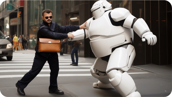 No sabemos si el “robo-cop” es solo alguien disfrazado de robot o no | Hecho en Midjourney