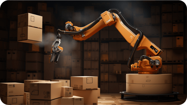 Al robot de FedEx se le complica organizar los paquetes cuando caen del techo, como en el tetris | Hecho en Midjourney