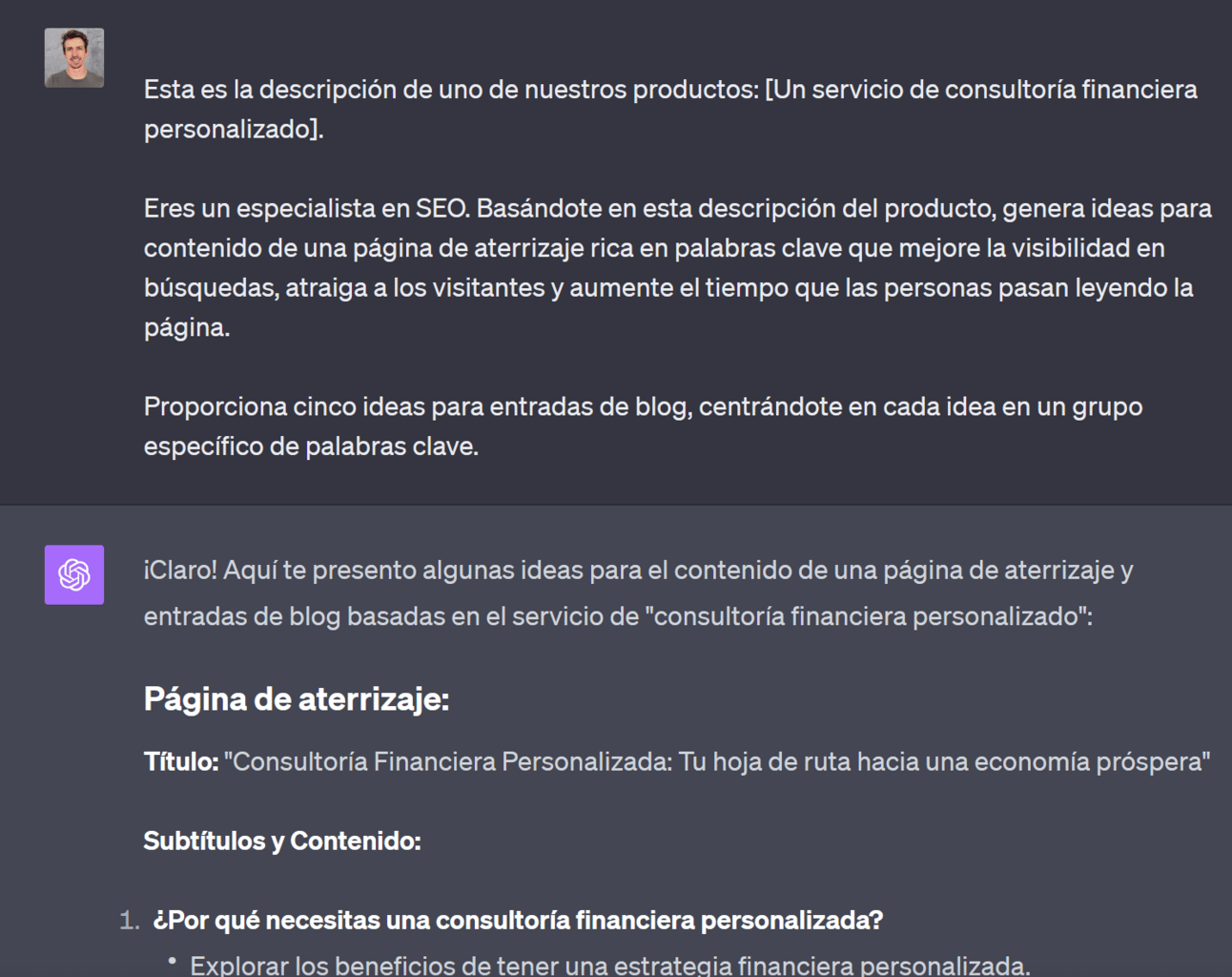 Dile a ChatGPT que actúe como experto de SEO y que te ayude a crear contenido.