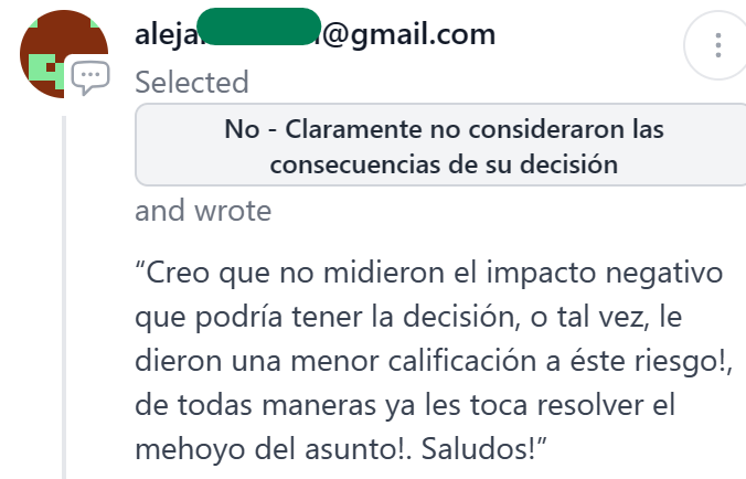 No - Claramente no consideraron las consecuencias de su decisión (60%)