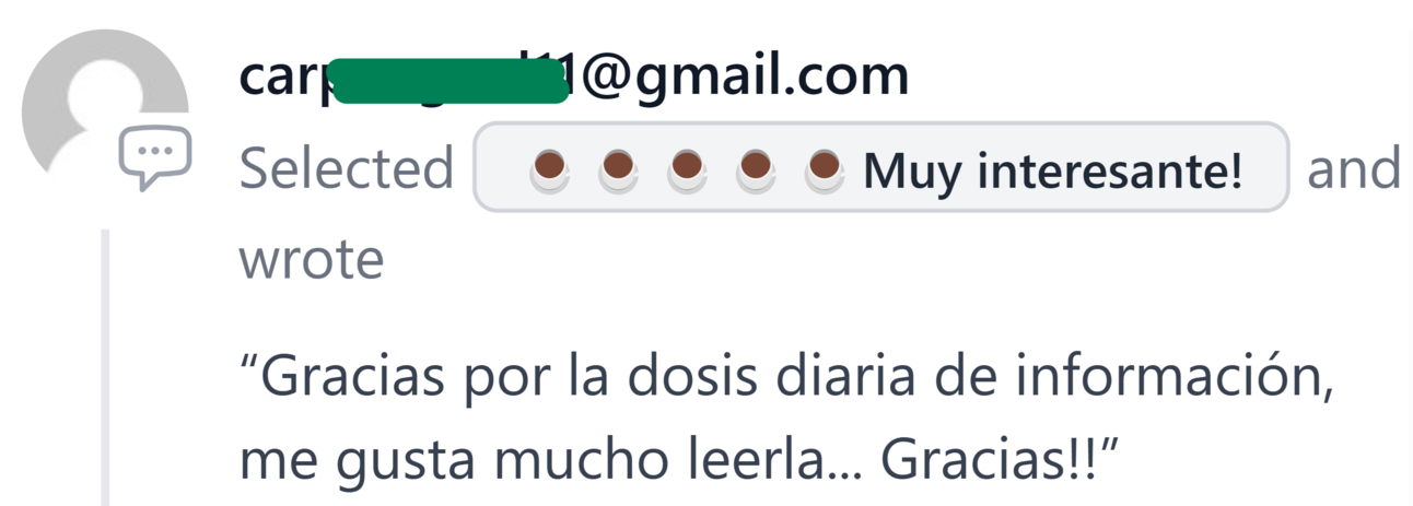 Si tienes algún comentario específico o algo interesante que quieras compartir, por favor, cuéntanoslo respondiendo a este correo.