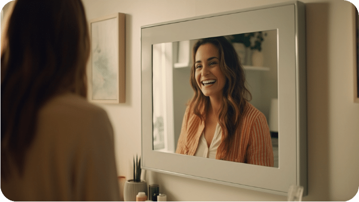 Mi super espejo mostrando mis emociones, seguro es viernes por mi sonrisa | Hecho por Midjourney