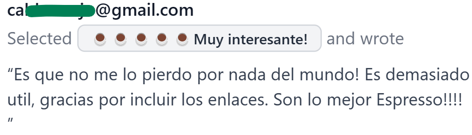 Si tienes algún comentario específico o algo interesante que quieras compartir, por favor, cuéntanoslo respondiendo a este correo.