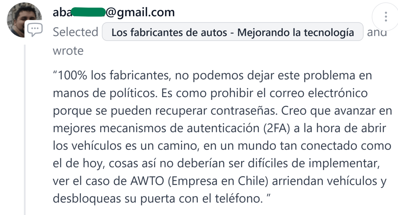 Respuestas de ayer: ¿Quién crees que debería liderar la lucha contra el robo de autos inteligentes?
