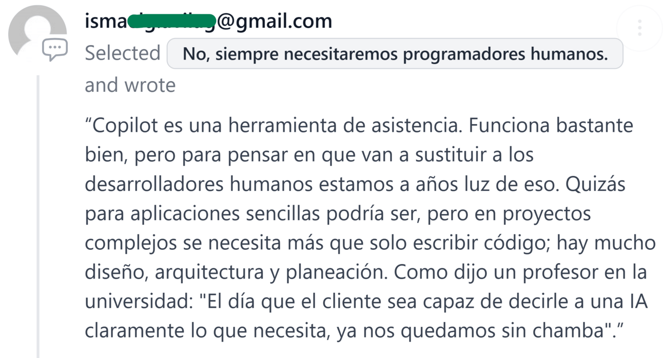 Resultados de ayer: ¿Piensas que asistentes como GitHub Copilot eventualmente podrían reemplazar a los programadores?