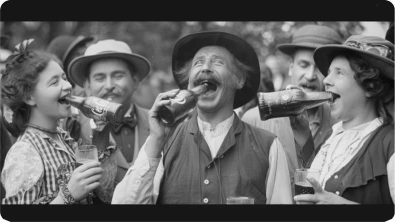 Disfrutando una Coca-Cola en 1900s, cuándo tenía más coca que cola. | Hecho en Midjourney