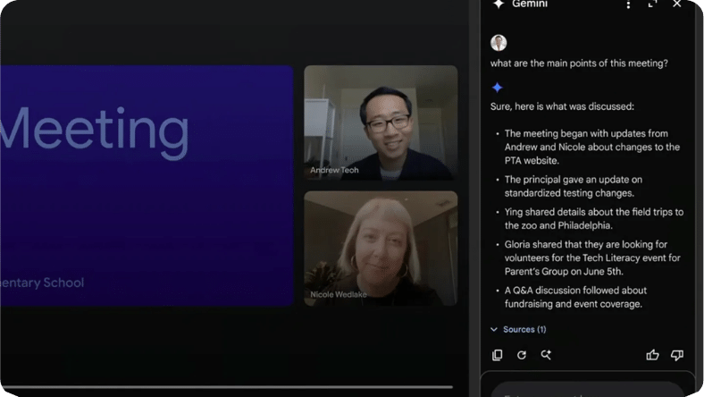 Gemini en Google Meet. Imagen Google