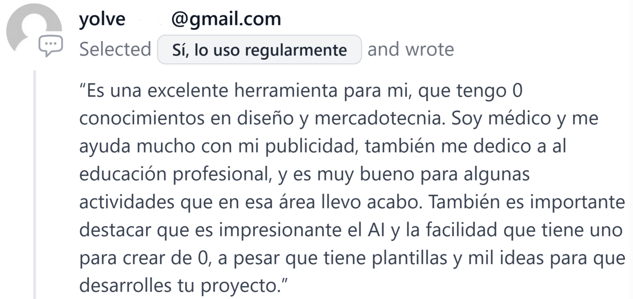 Respuesta del día: Parece que la mayoría lo usa en sus pymes, o proyectos de diseño para clientes. Lo usamos para todas las fotos en Espresso, así que soy fan también. Si alguien de Canva lee esto… sean sponsors? 🙂 -FC.