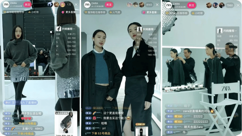 Los shows en vivo de Zara en Douyin, con modelos luciendo vestidos, zapatos y joyas, han impulsado las ventas de la marca en un 50% más de productos desde su lanzamiento en noviembre, según datos de EDITED.