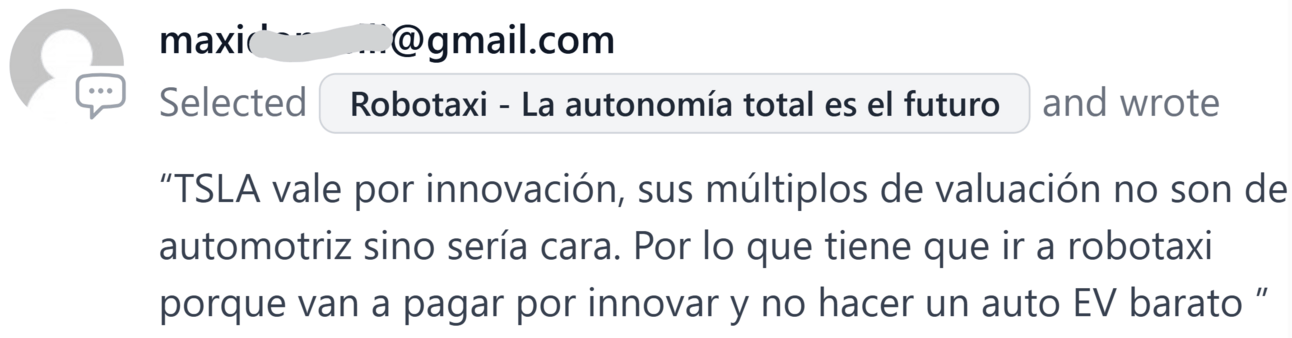 Respuesta del día: El cambio a los robotaxis será como cambiar de los caballos a los primeros autos. Se necesitarán muchísimos menos coches y no estarían aparcados todo el día. Me imagino que quedan 5+ años para algo así. -FC