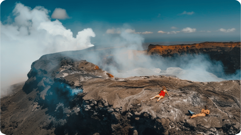 El agente de IA nos recomendó escapar del invierno en la cima de un volcán. Creo que toca recalibrarlo. | Hecho en Midjourney
