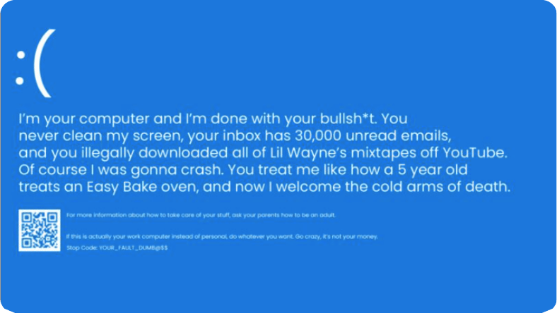 Uno de los memes favoritos del Windows outage. No es IA, es de un humano muy cómico | Vía danielhtoomey en LinkedIn