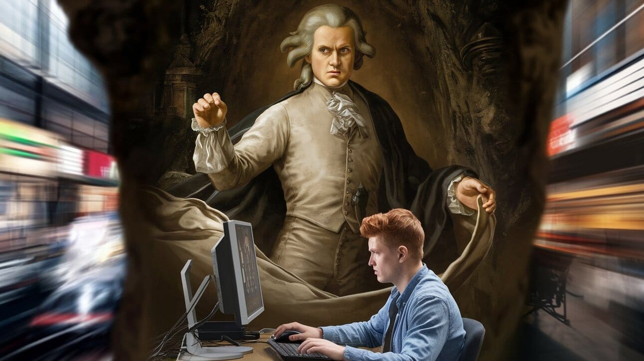 Mozart me ve con reprobación mientras yo juego a que soy músico en mi PC. No tengo pruebas ni tampoco dudas.
