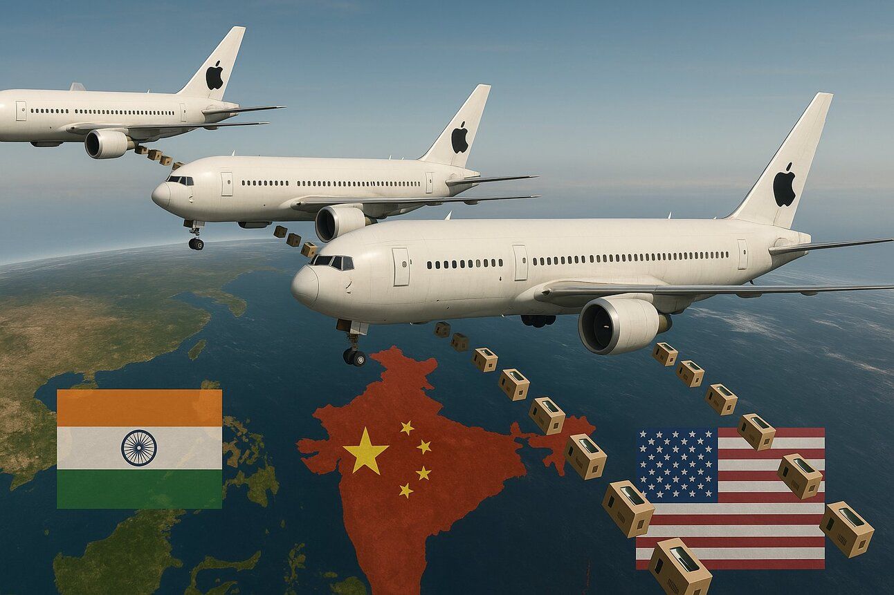 Y según el Journal, Apple está redirigiendo cantidades masivas de iPhone para ser enviados desde India (y no desde China) a EE.UU. El iPhone representa como el 50% de los ingresos de la compañía.