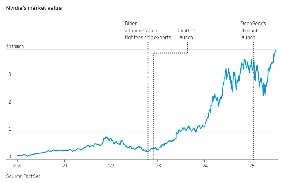Nvidia es más valiosa que ninguna otra empresa lo ha sido en la historia