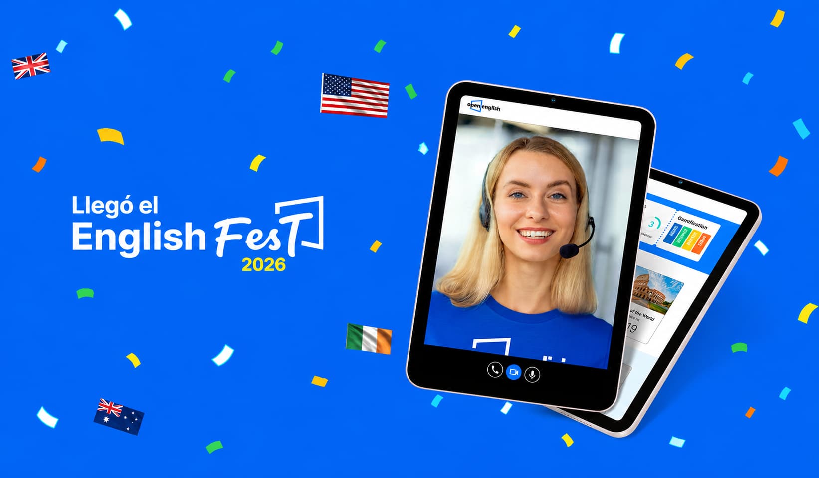 ¿Qué es eso del English Fest? Open English tiene clases ilimitadas con profesores nativos las 24 horas, se adapta a tu nivel, y tiene contenido en inglés corporativo con tutora de IA incluida.