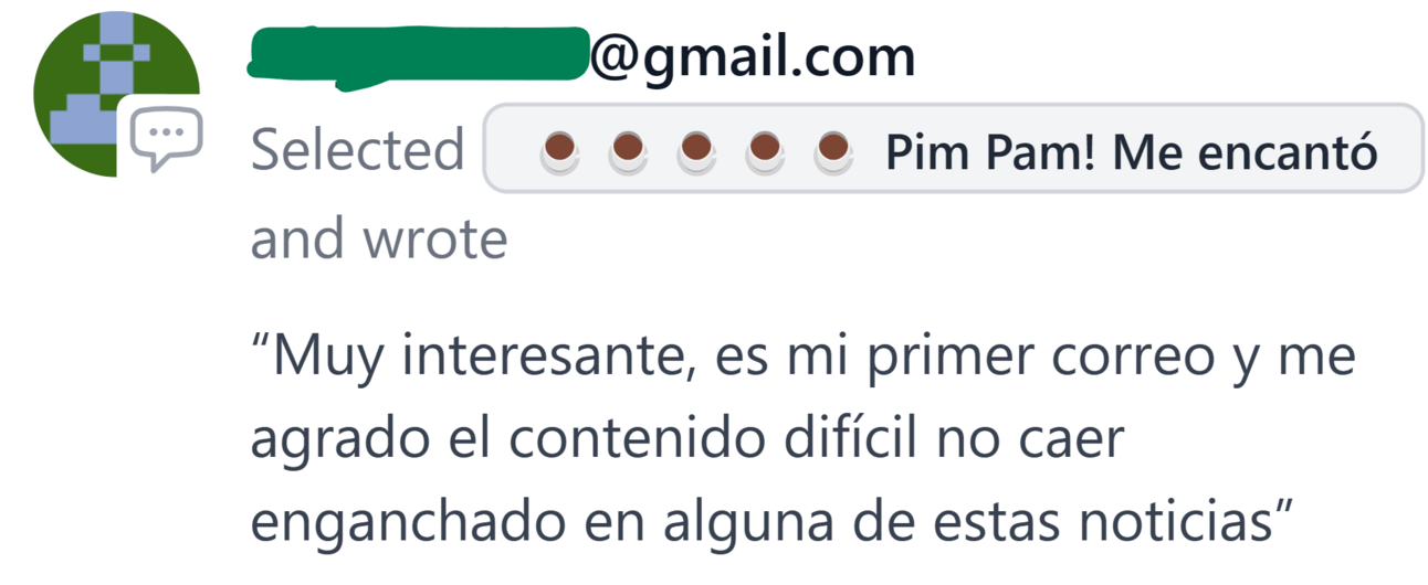 Responde al email o escoge una opción y dinos por qué te gustó o no.