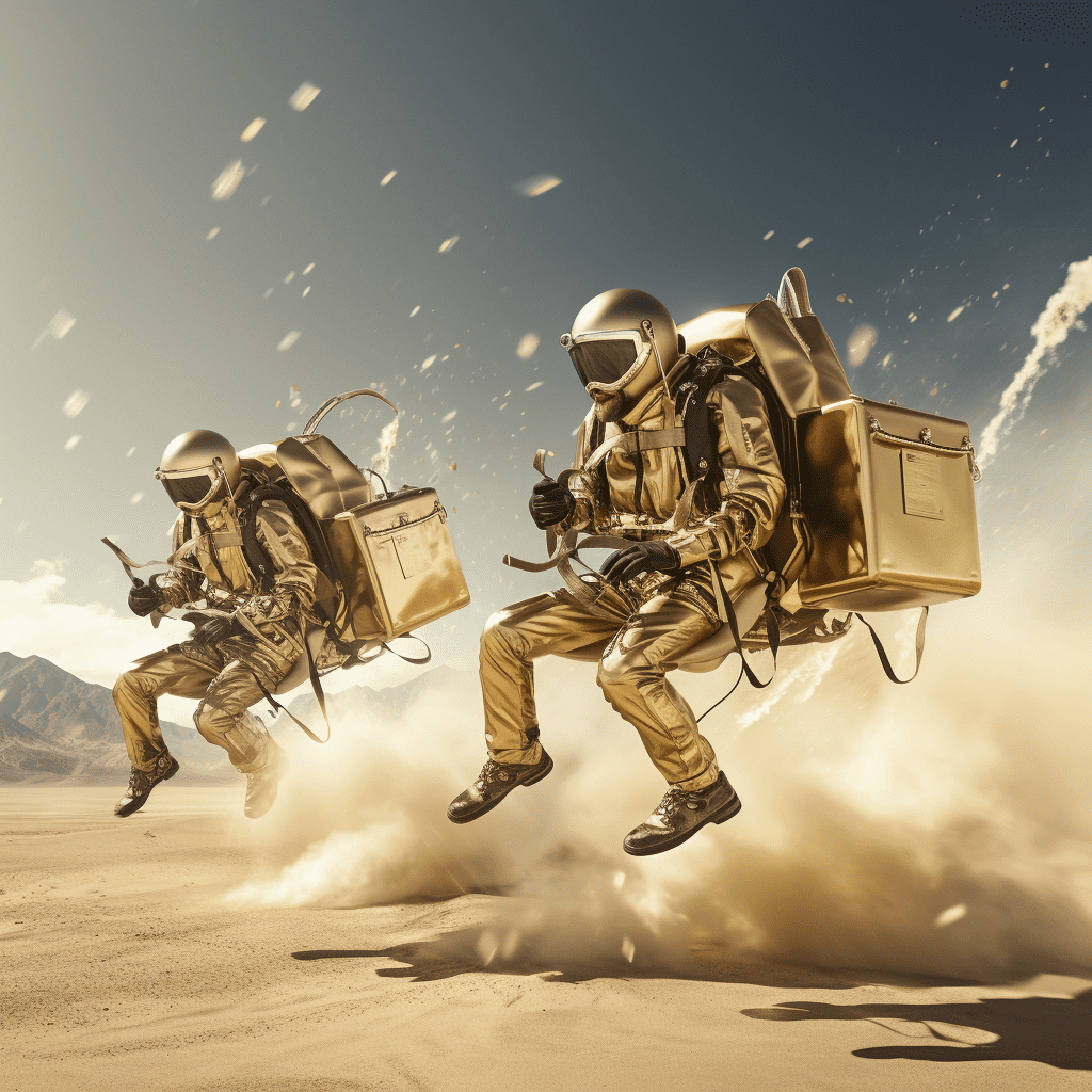 Aquí tenemos a los ladrones de oro con jetpacks | Hecho en Midjourney
